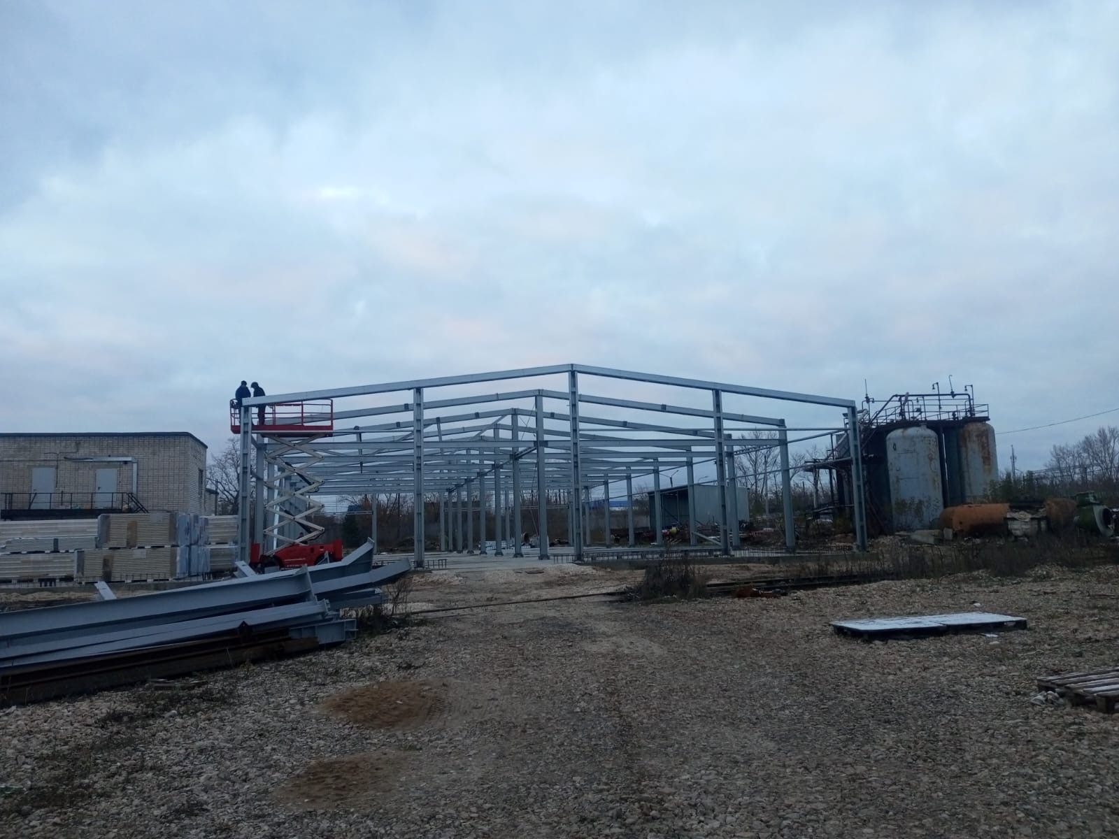 В городе Дзержинск в Нижегородской области было реализован проект по строительству Ангара складского типа на базе ЛСТК (Легкие Стальные Тонкостенные Конструкции).