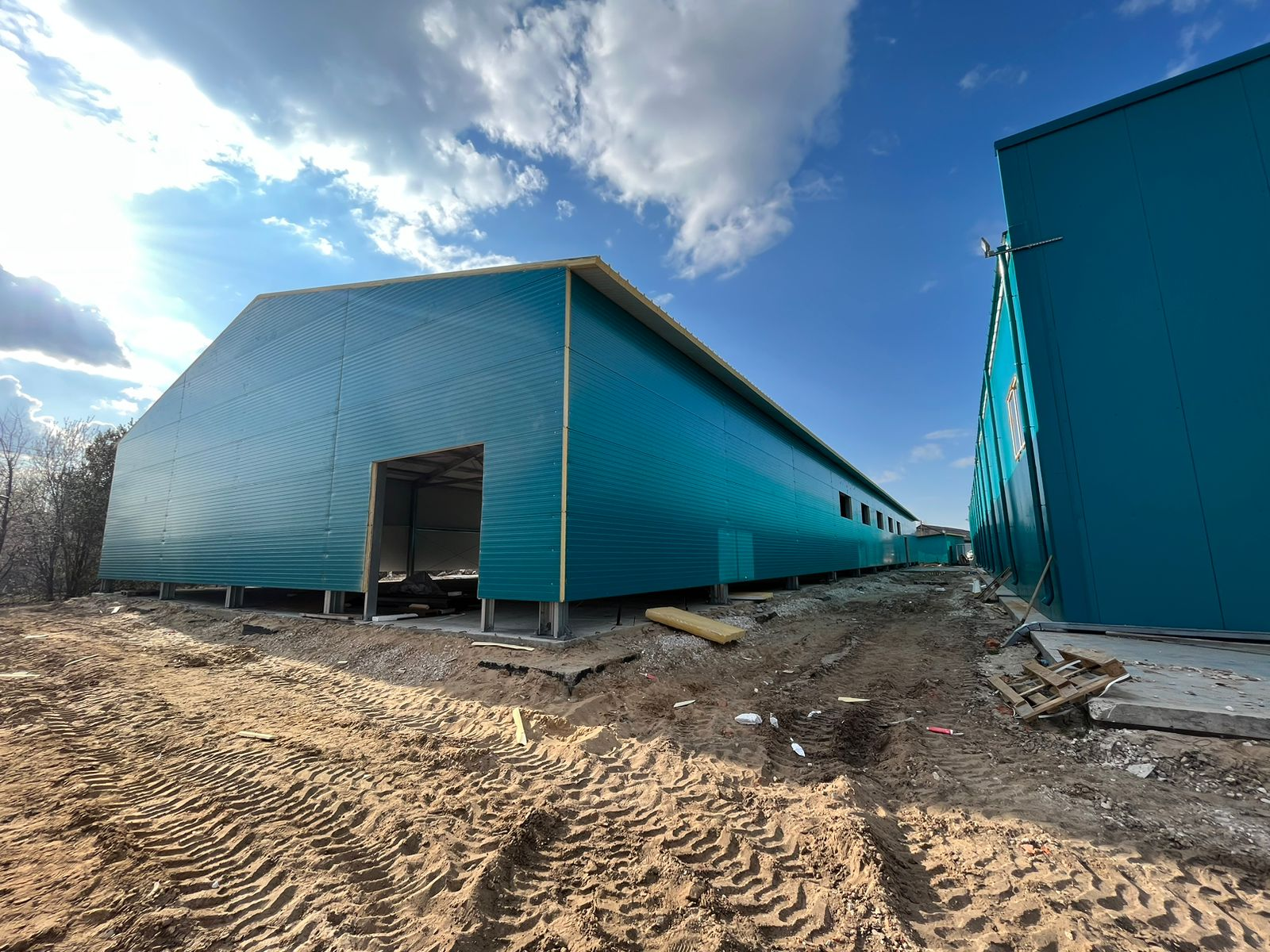 - Выполнение работ по обшивке каркаса самонесущего склада;