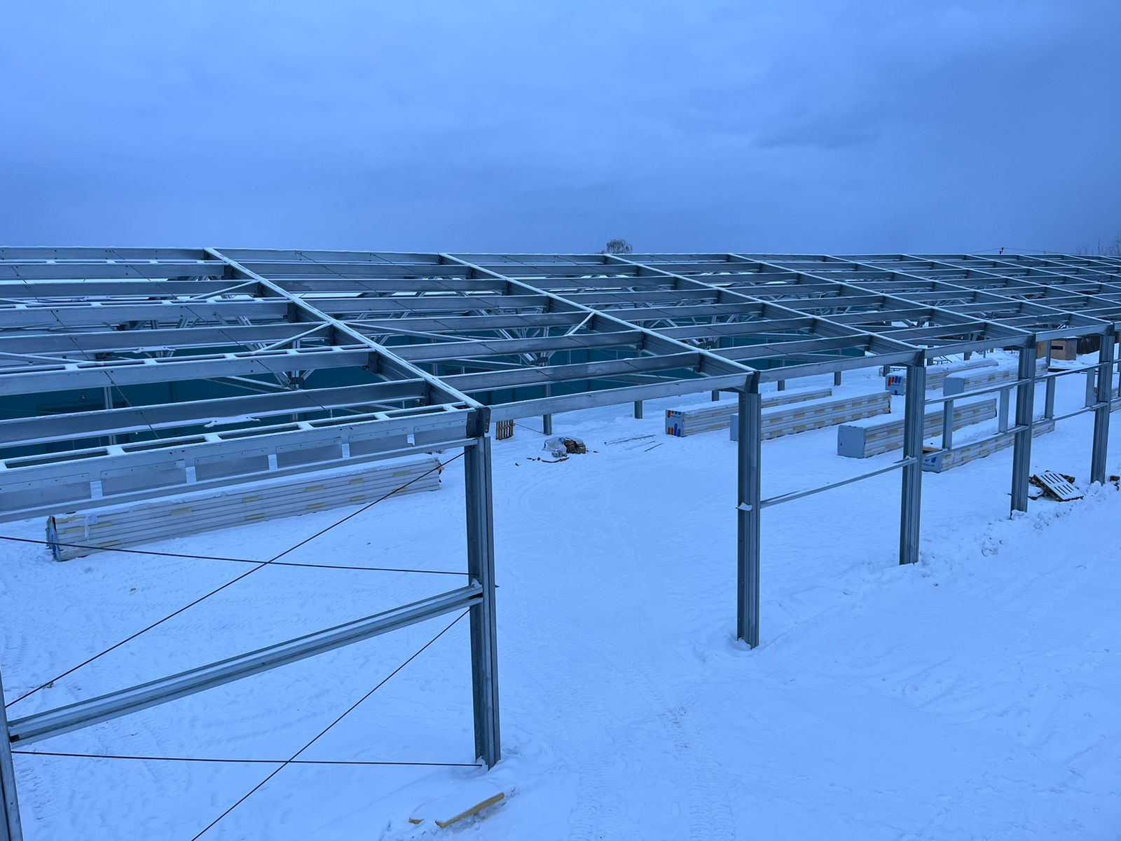 Строительство самонесущего склада на базе ЛСТК было выполнено за 3 месяца, без учёта фундаментных работ. Сборка и монтаж склада осуществлялись в зимний период, что конечно, сказалось на сроках строительства. Но, несмотря на все сложности осуществления монтажа в зимний период, самонесущий склад был смонтирован в срок и успешно введён в эксплуатацию на территории Заказчика!