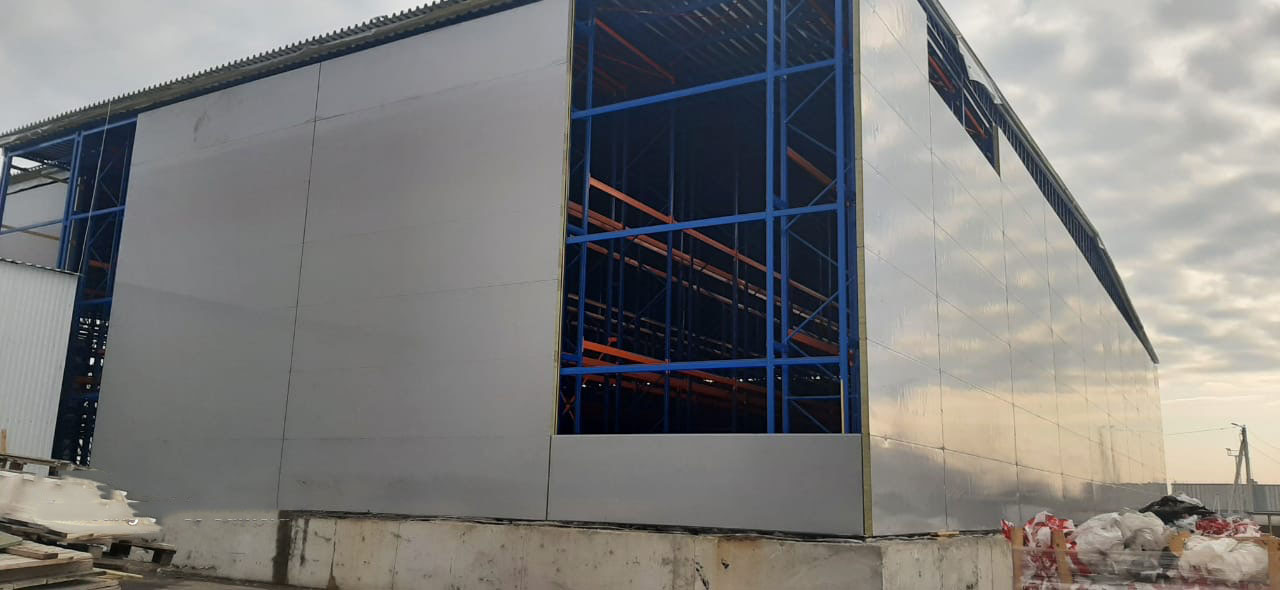 - Обшивка снс склада сэндвич-панелями