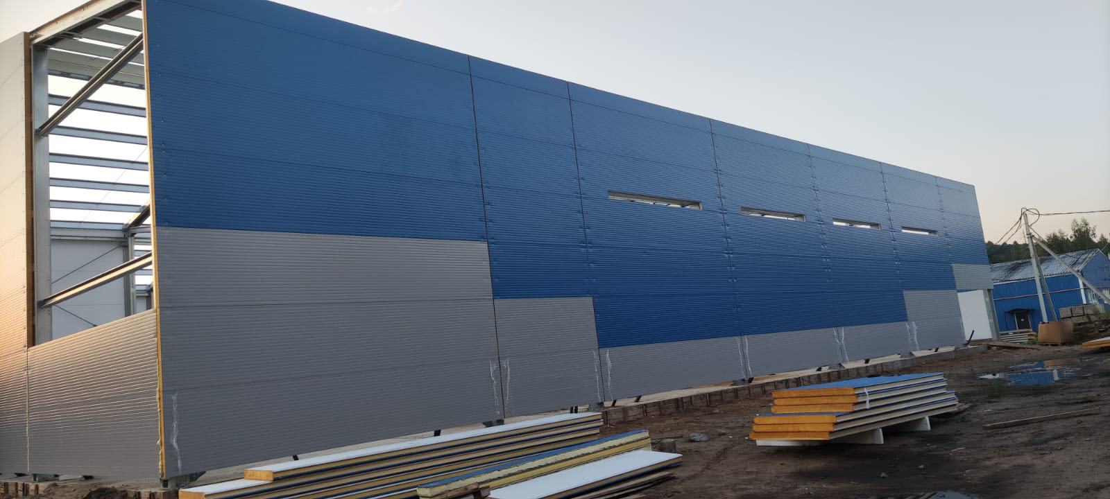 - Обшивка ангара сэндвич-панелями;