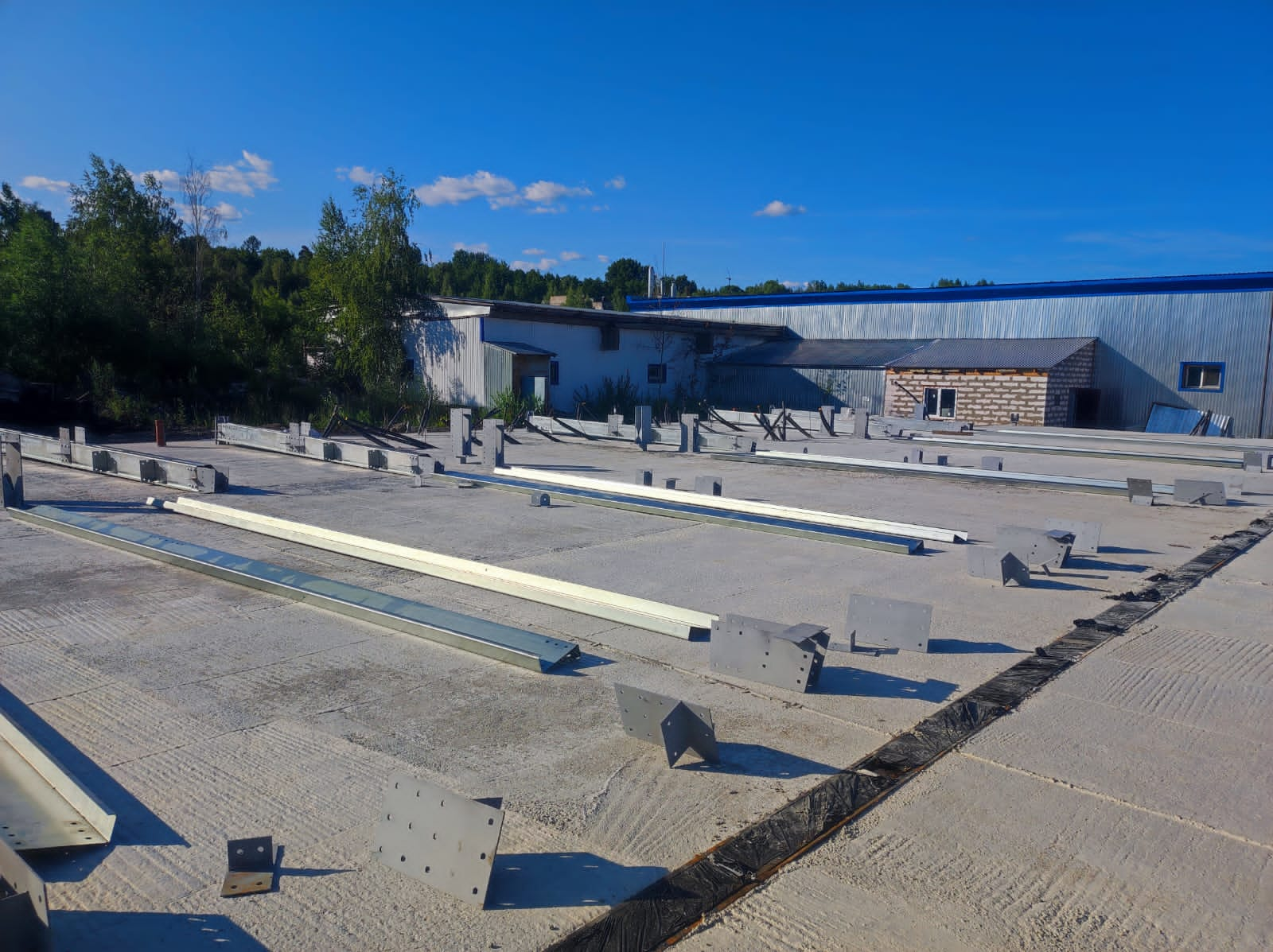 - Установка водосточной системы и системы снегозадержания на ангар из ЛСТК;
