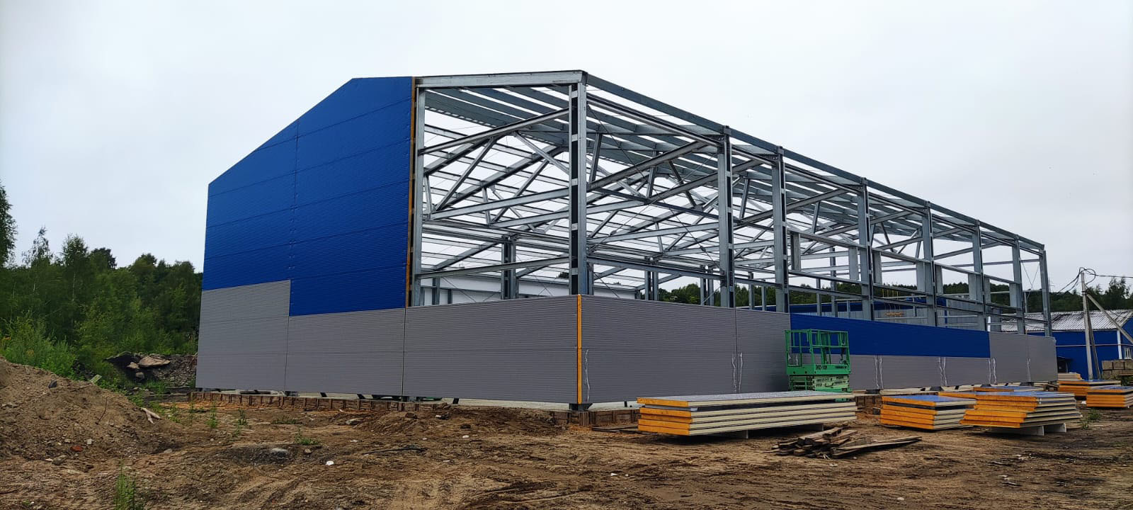 В городе Заволжск нашей компанией реализован проект строительства ангара из ЛСТК (Легкие Стальные Тонкостенные Конструкции).